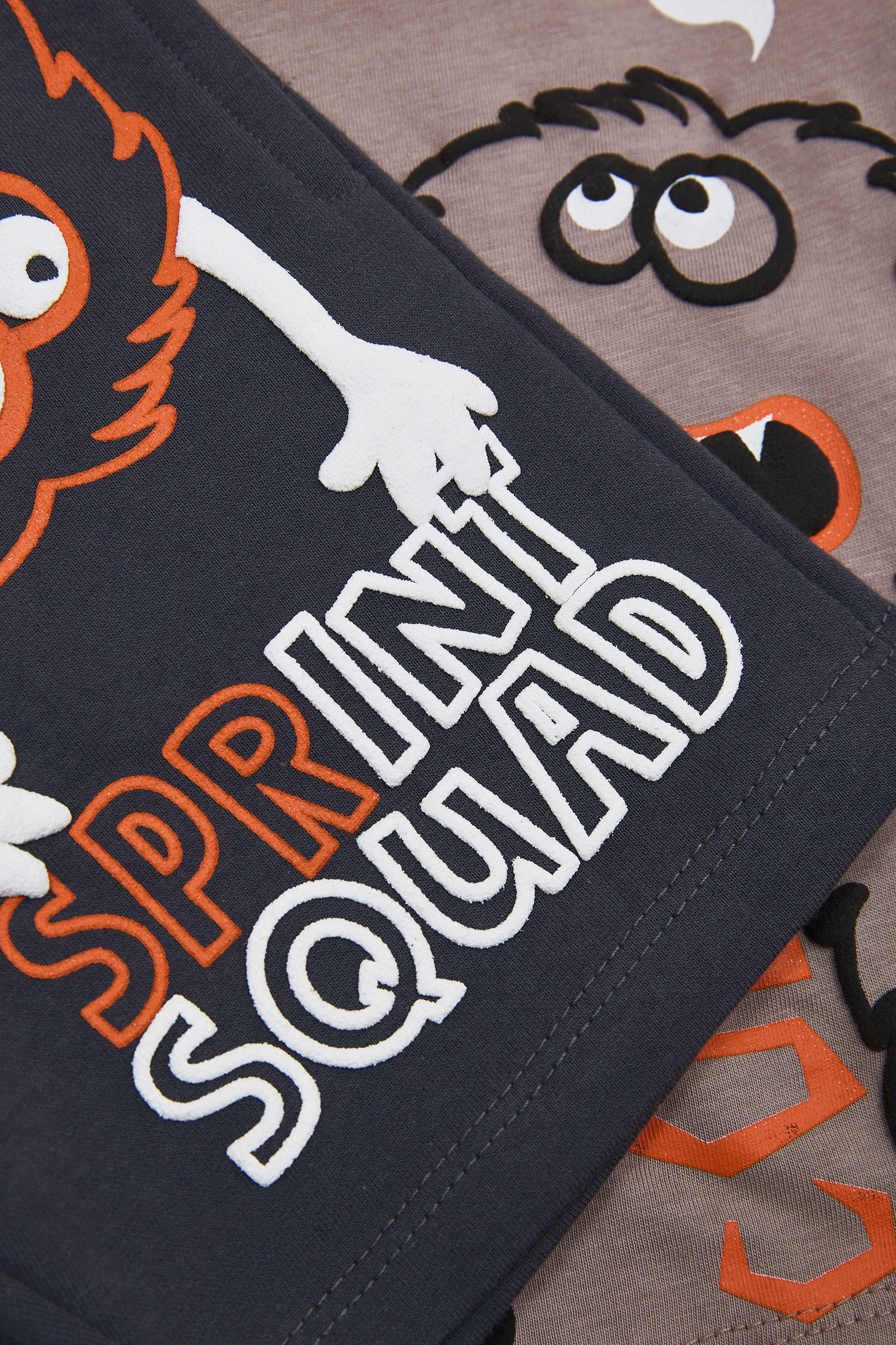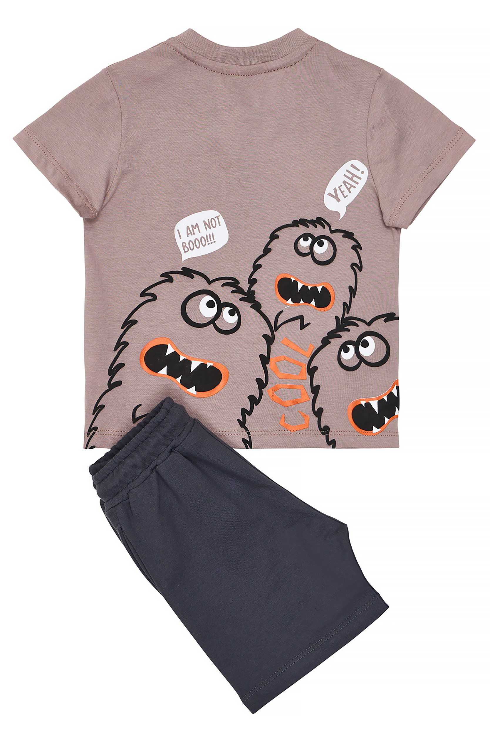 • Children’s set of 2 pieces. Blouse with embossed print on the front and back Sprint “Monster Squad”. Sweatshirt shorts with elastic waistband and adjustable drawstrings, side pockets printed with a fluffy and cute monster.