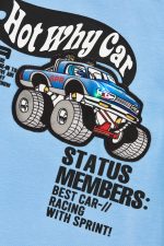• Children’s set of 2 pieces. Front printed “Best racing car” t-shirt with built-in flashing light and trim with two-tone ribbed sleeves. Sweatshirt shorts with elasticated waistband and adjustable drawstrings, side pockets, colour contrasting floss vertically on the side and print on the bottom.