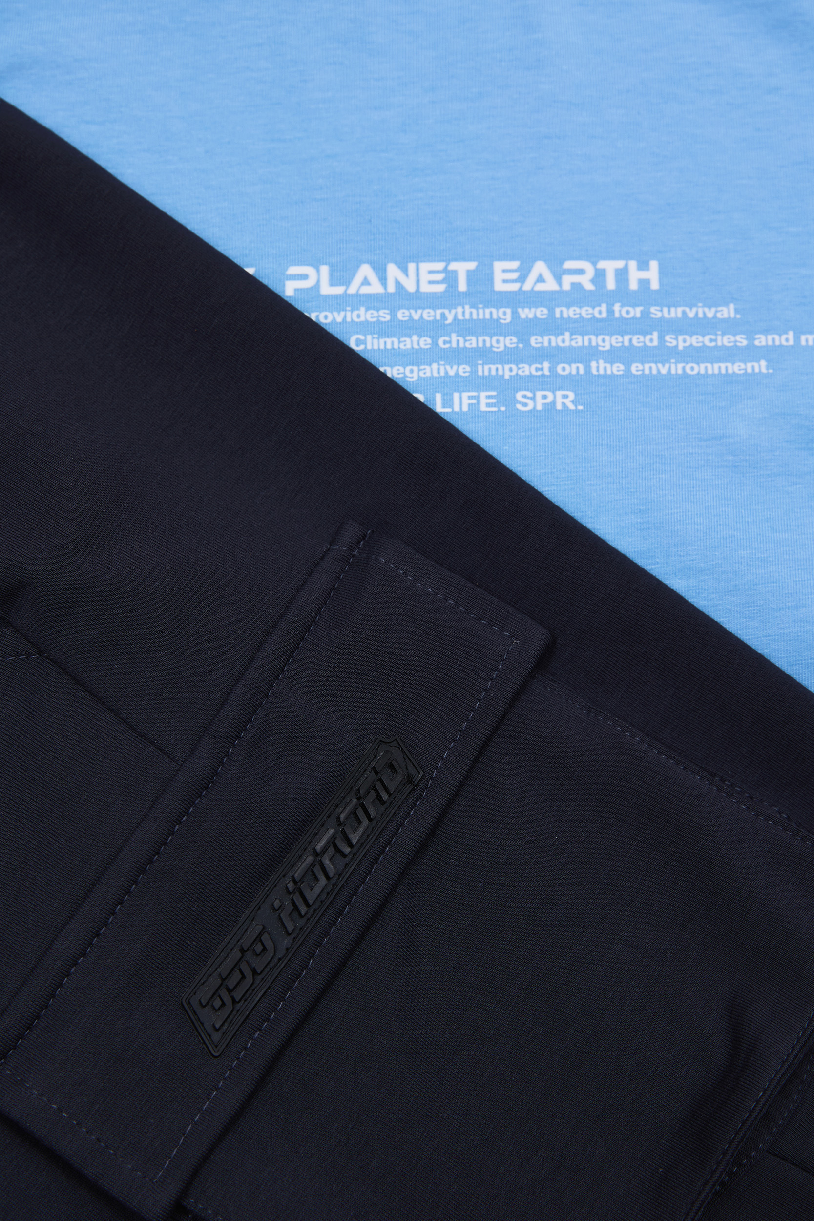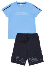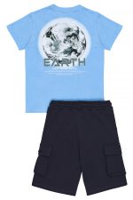 - Children’s set of 2 pieces. Blouse with embossed “Save Planet Earth” print on the chest and back. Detailed with a colour contrasting bow on the sleeves. Sweatshirt shorts with elastic waistband and adjustable drawstrings, front slant pockets and side cargo pockets with print and rubber SPRINT label.