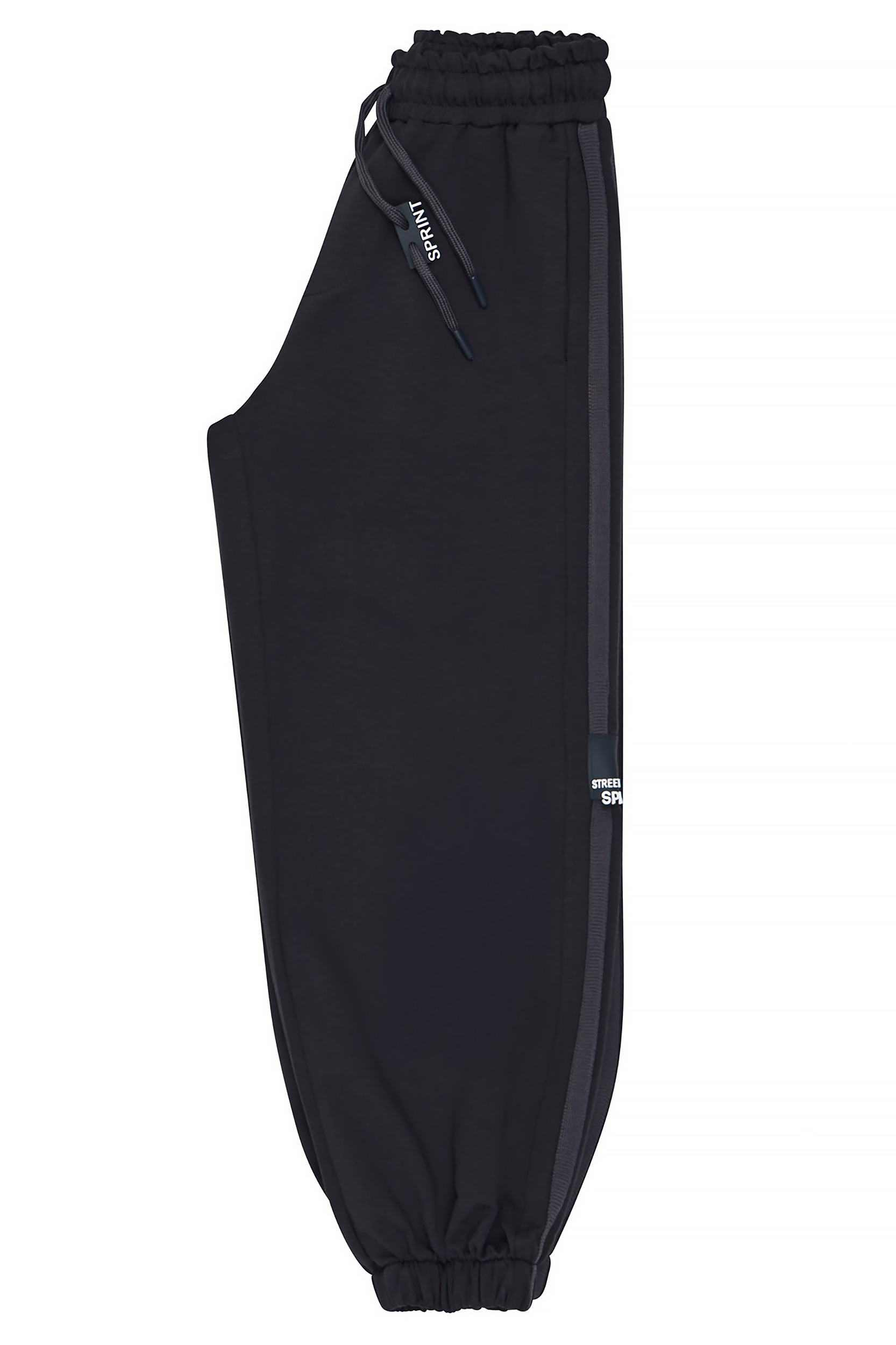 • Kids jogger sweatshirt sweatpants with elastic waistband and adjustable drawstrings with rubber decorative label. Side pockets with side sport facings, applique rubber SPRINT label and back pocket.