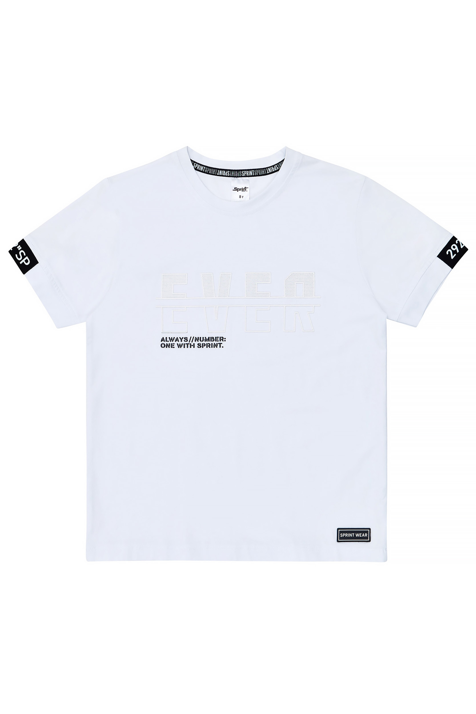 - Camicetta da bambino con stampa frontale con texture in rilievo ed etichetta SPRINT con logo in gomma applicato e dettagli sulle maniche in colore a contrasto.