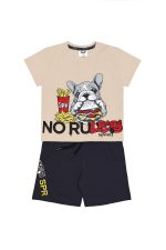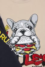 - Set di 2 pezzi per bambini. Camicetta con stampa sul davanti di un bulldog francese che gusta un hamburger e patatine. Pantaloncini in felpa con elastico in vita e coulisse regolabile, tasche anteriori oblique e stampa laterale.