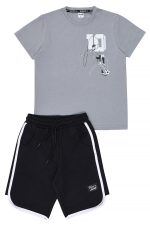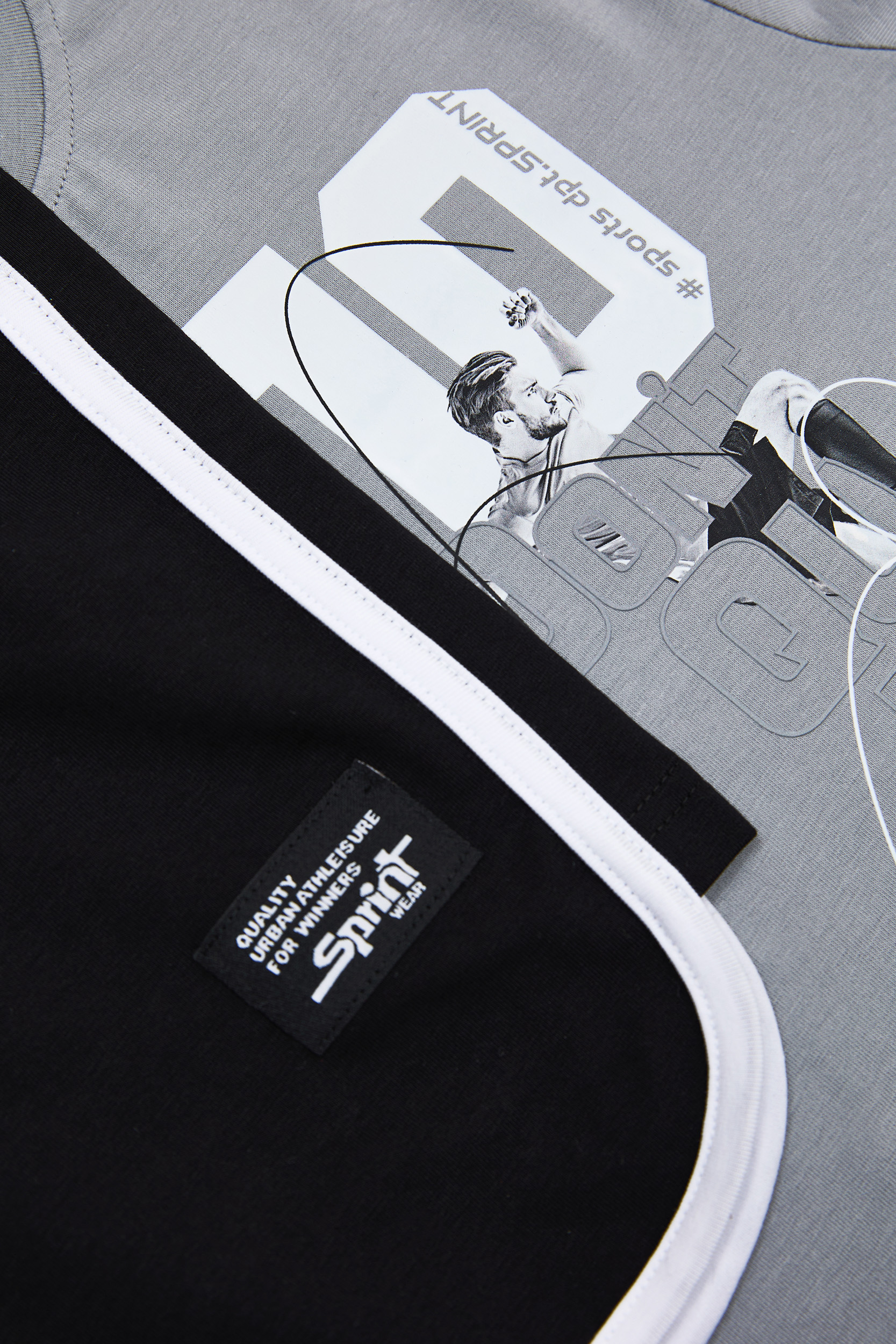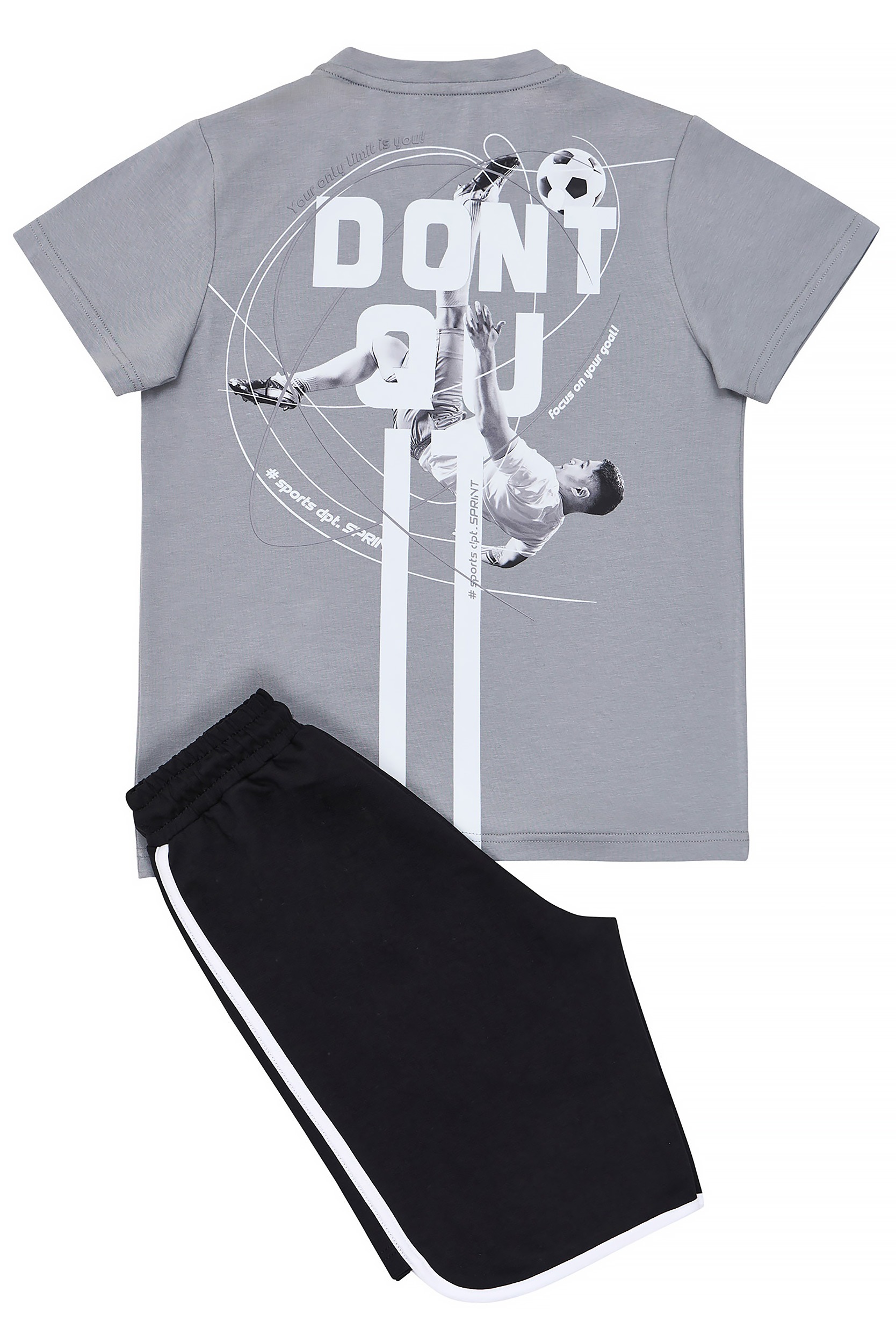 • Set di 2 pezzi per bambini. Maglietta con stampa “Don’t Quit” sul davanti e sul retro a tema calcio. Pantaloncini sportivi con cappuccio, elastico in vita e coulisse regolabile, con tasche rotonde anteriori, etichetta SPRINT in gomma e bordi sportivi bicolore.