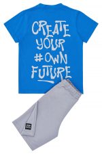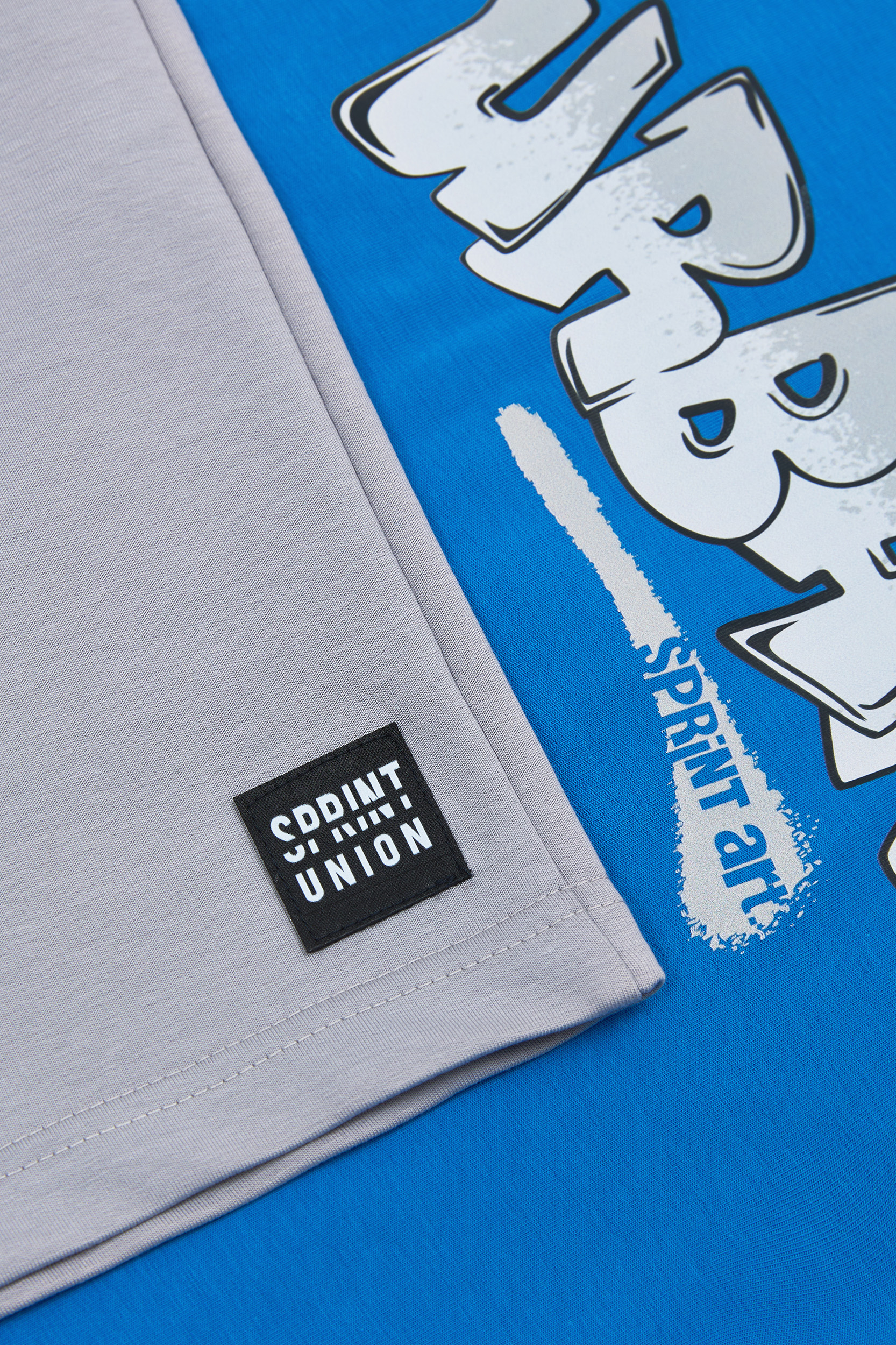 - Set di 2 pezzi per bambini. Camicetta con stampa urbana “Crea il tuo futuro” sul petto e sulla schiena. Pantaloncini in felpa con elastico in vita e coulisse regolabile, tasche anteriori oblique ed etichetta con logo SPRINT sul fondo.