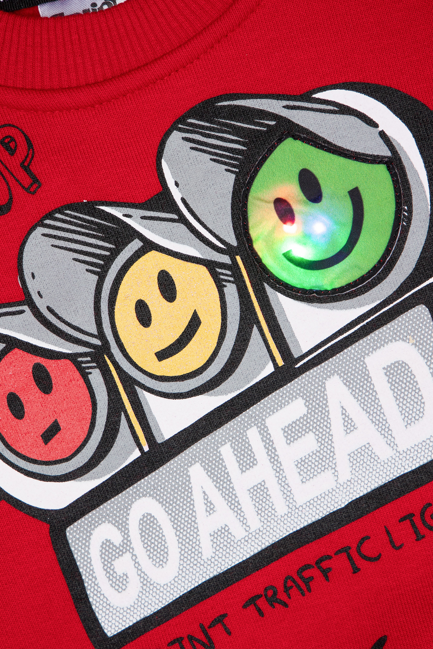 - Παιδικό σετ φόρμας 2 τεμαχίων φούτερ με χνούδι. Μπλούζα με στρογγυλή λαιμόκοψη, τύπωμα εμπρός με θέμα TRAFFIC LIGHTS και λαμπάκι που αναβοσβήνει. Παντελόνι με ελαστικό ζωνάρι και ρυθμιζόμενα κορδόνια, μπροστινές λοξές τσέπες και τύπωμα στο κάτω μέρος.