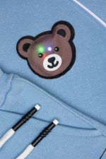 - Παιδικό σετ φόρμας 2 τεμαχίων φούτερ με χνούδι. Ζακέτα με κουκούλα, κλείσιμο με φερμουάρ στο μπροστινό μέρος και τσέπες. Τύπωμα μπροστά και στα μανίκια με λεπτομέρεια δίχρωμη στις ραφές και λαμπάκι που αναβοσβήνει. Παντελόνι με ελαστικό ζωνάρι και ρυθμιζόμενα κορδόνια και τύπωμα.