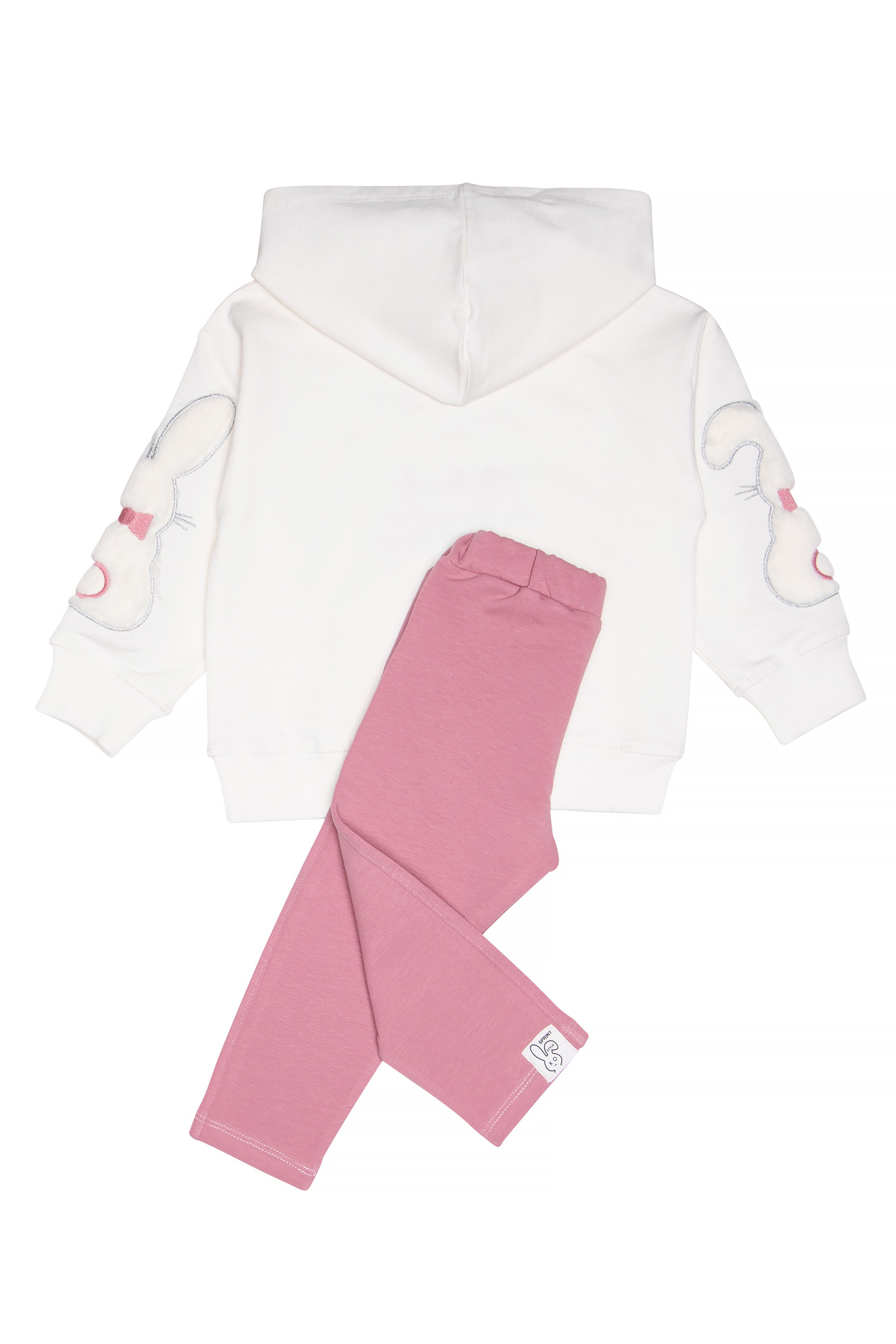 - Παιδικό σετ 2 τεμαχίων φούτερ λύκρα με χνούδι. Μπλούζα με κουκούλα με silver κέντημα εμπρός και ανάγλυφο γούνινο BUNNY στα μανίκια. Κολάν με ελαστικό ζωνάρι και απλικέ ετικέτα.