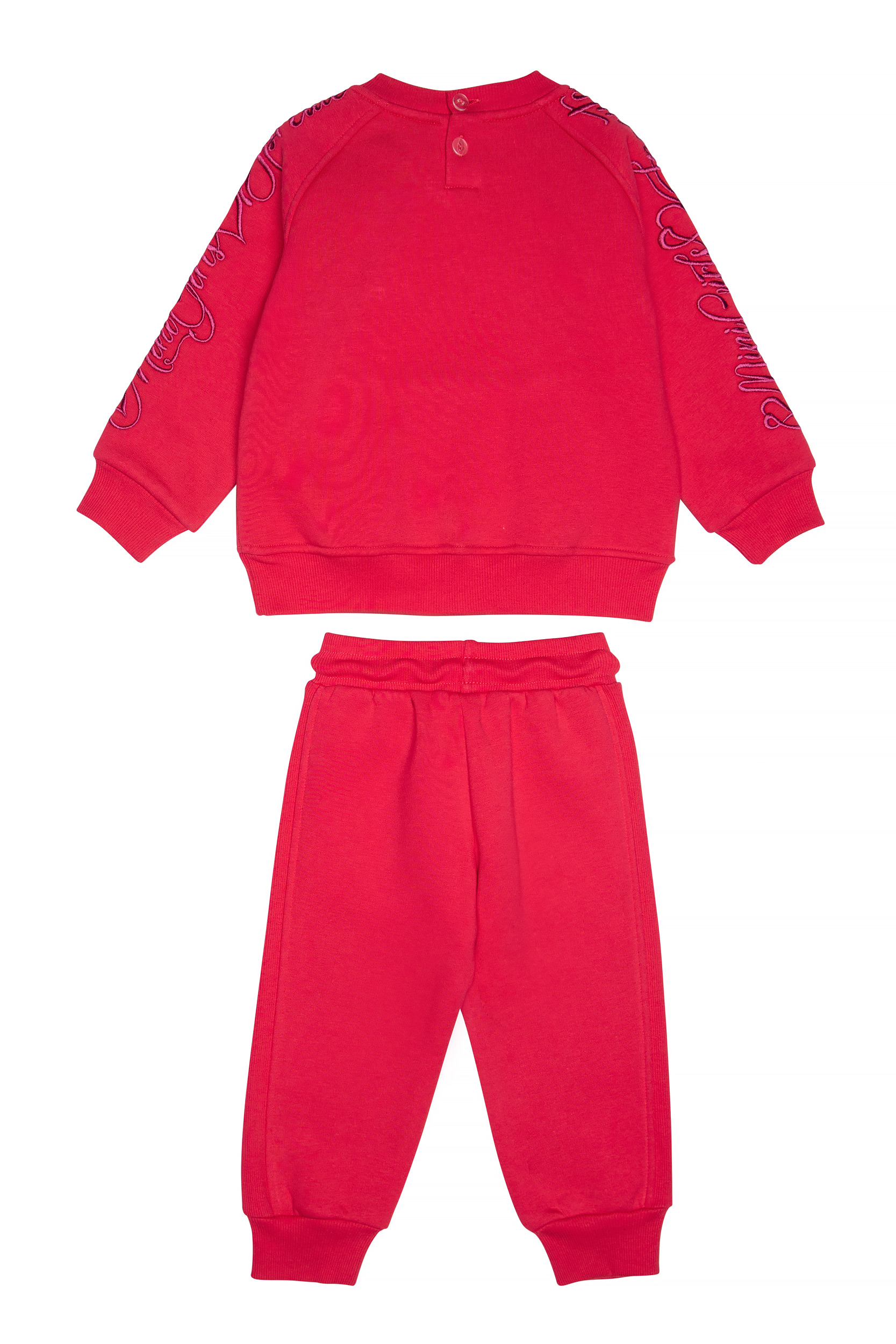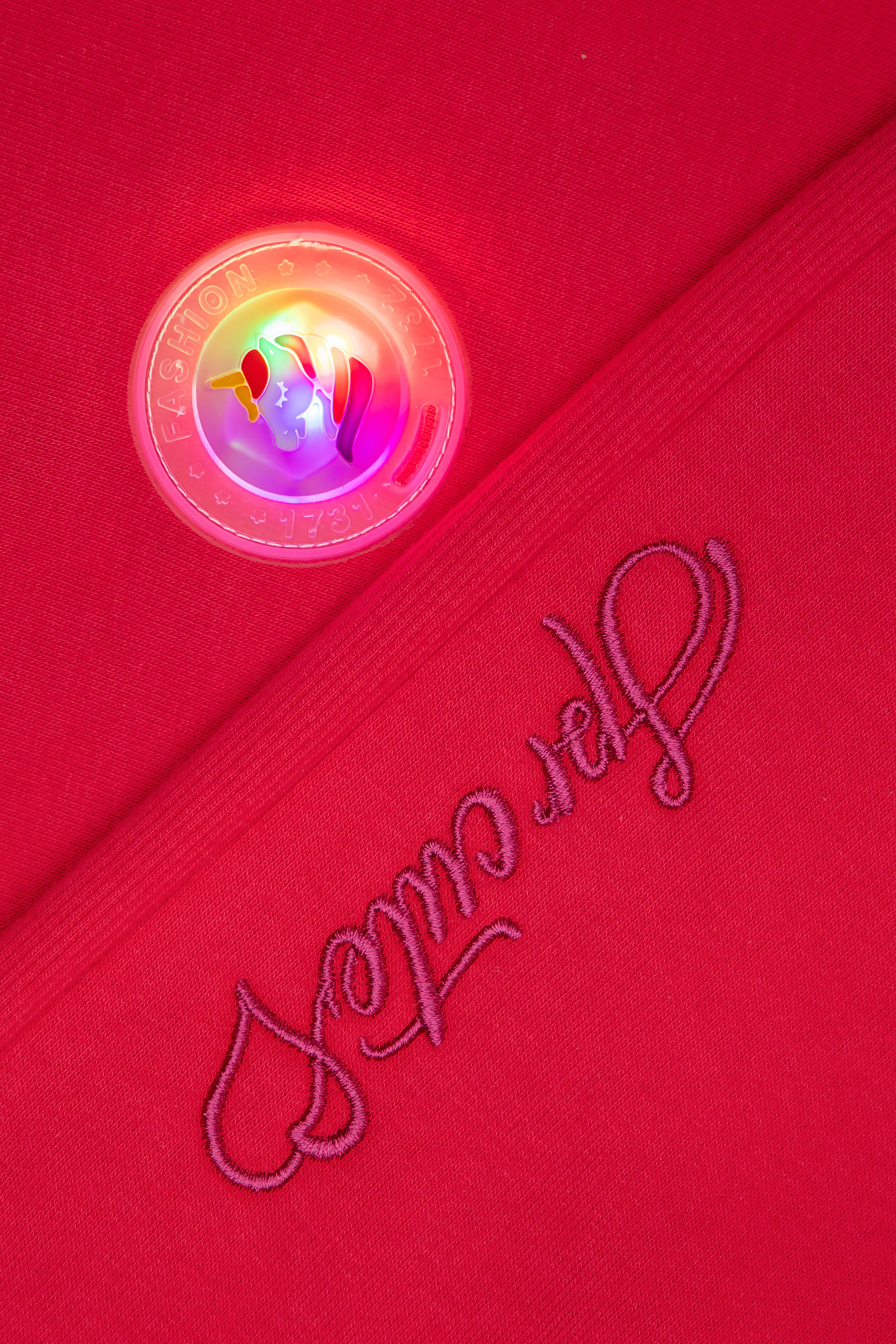 - Παιδικό σετ φόρμας 2 τεμαχίων φούτερ με χνούδι. Μπλούζα με στρογγυλή λαιμόκοψη και τσέπη εμπρός με κέντημα στα μανίκια και λαμπάκι που αναβοσβήνει. Παντελόνι με ελαστικό ζωνάρι και ρυθμιζόμενα κορδόνια με πλαϊνές τσέπες και κέντημα.