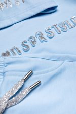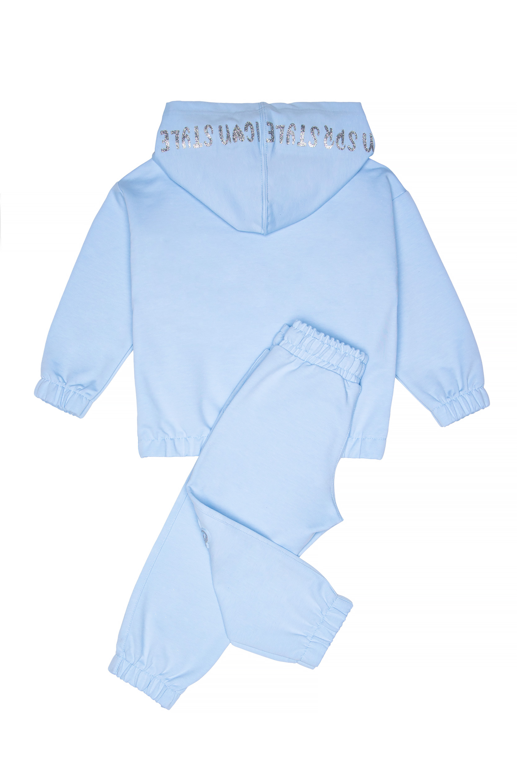 - Παιδικό σετ φόρμας 2 τεμαχίων φούτερ χωρίς χνούδι. Μπλούζα με κουκούλα και τύπωμα silver glitter με ανάγλυφη υφή με λάστιχο κάτω και στα μανίκια. Παντελόνι με ελαστικό ζωνάρι και ρυθμιζόμενα κορδόνια με μπροστινές λοξές τσέπες και silver glitter ανάγλυφο τύπωμα.