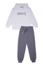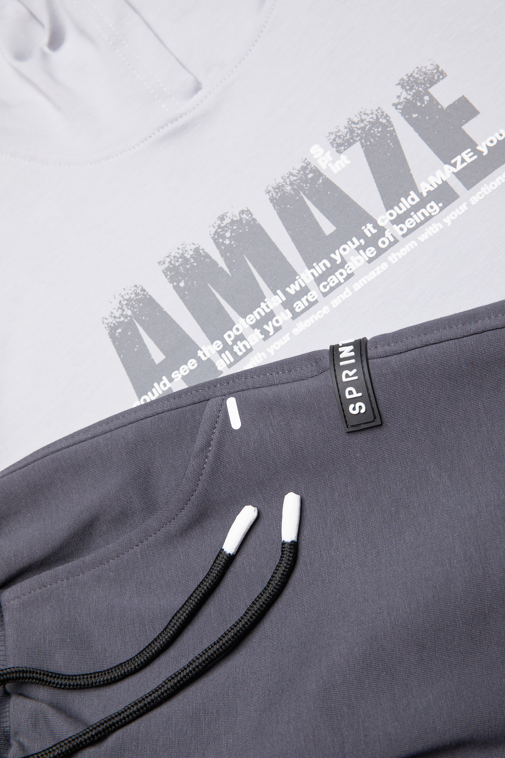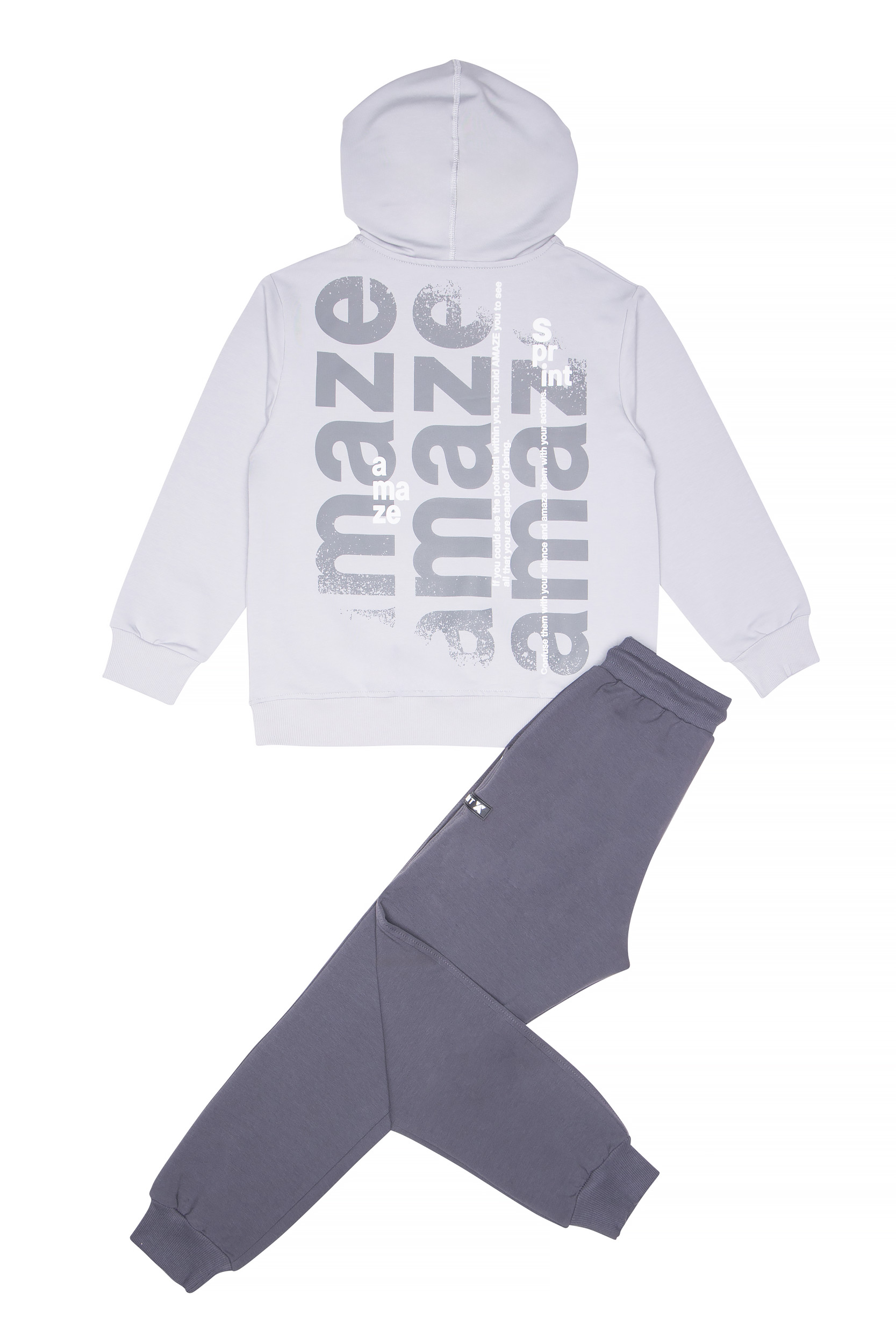 - Παιδικό σετ φόρμας 2 τεμαχίων φούτερ χωρίς χνούδι. Μπλούζα με κουκούλα και τσέπη, τύπωμα μπροστά και πίσω. Παντελόνι με ελαστικό ζωνάρι και ρυθμιζόμενα κορδόνια με μπροστινές λοξές τσέπες και rubber ανάγλυφη SPRINT ετικέτα.