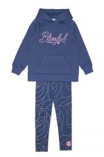• Παιδικό σετ 2 τεμαχίων. Μπλούζα φούτερ με χνούδι με κουκούλα και τσέπη, τύπωμα εμπρός με ανάγλυφη υφή. Κολάν λύκρα με allover τύπωμα.