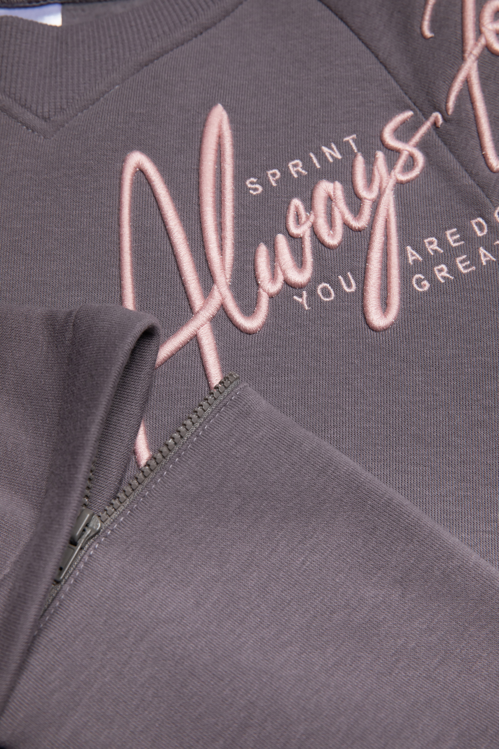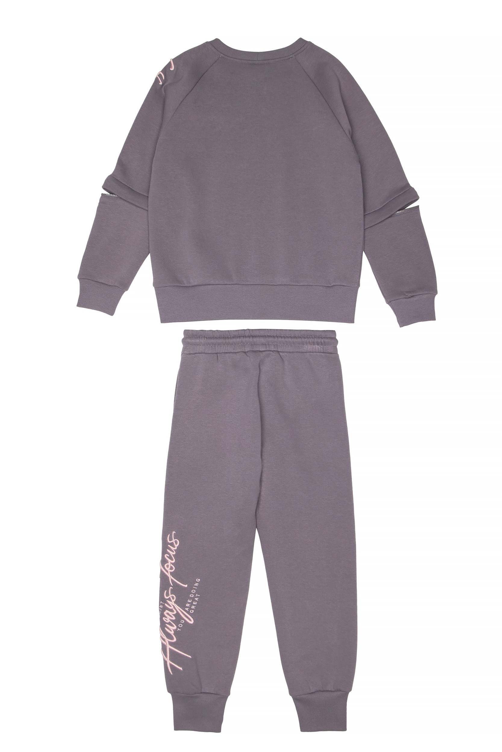 - Παιδικό σετ φόρμας 2 τεμαχίων φούτερ με χνούδι. Μπλούζα με στρογγυλή λαιμόκοψη και κέντημα εμπρός και στο μανίκι με ανάγλυφη υφή, ανοίγματα με φερμουάρ στους αγκώνες. Παντελόνι με ελαστικό ζωνάρι και ρυθμιζόμενα κορδόνια με πλαϊνές τσέπες και ανάγλυφο κέντημα.