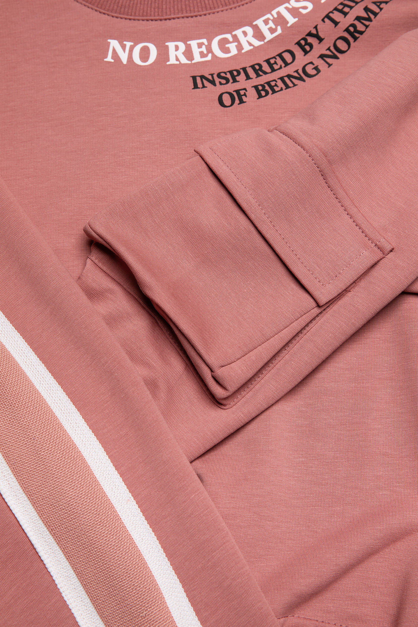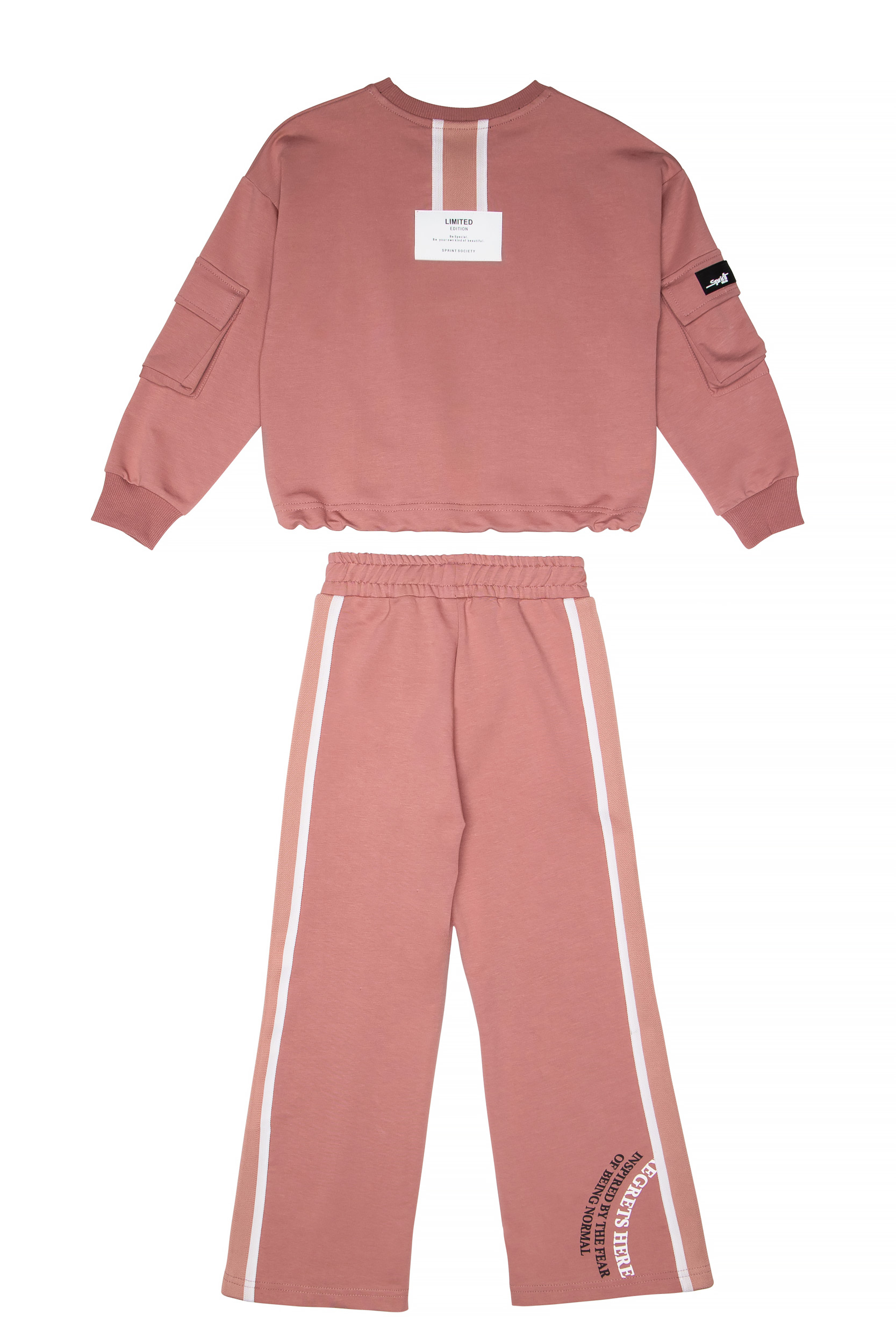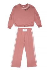 - Παιδικό σετ 2 τεμαχίων φούτερ λύκρα με χνούδι. Μπλούζα με στρογγυλή λαιμόκοψη με τύπωμα και πλεκτή αθλητική φάσα με απλικέ ετικέτα στην πλάτη, τσέπες με πατ στα μανίκια και λάστιχο στο κάτω μέρος με stop αυξομείωσης. Ίσιο παντελόνι με ελαστικό ζωνάρι, πλαϊνές τσέπες και δίχρωμες αθλητικές φάσες.
