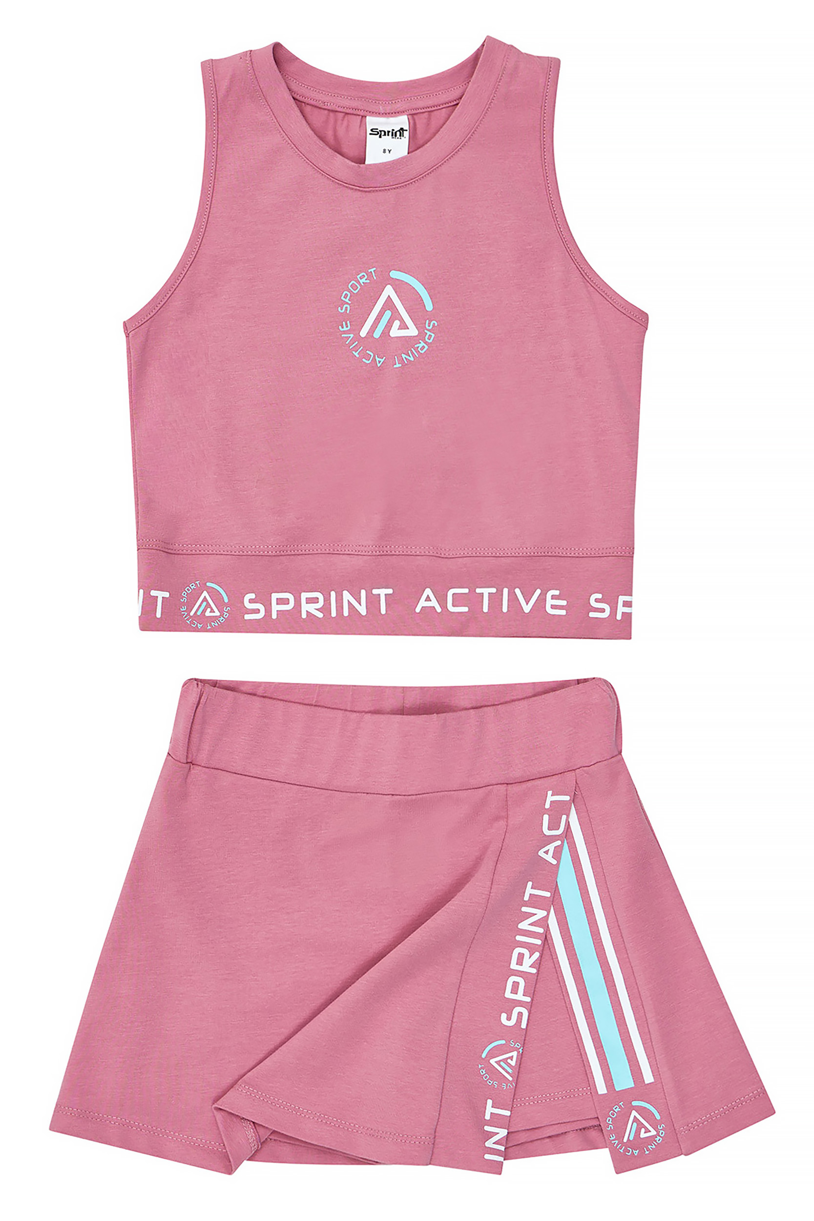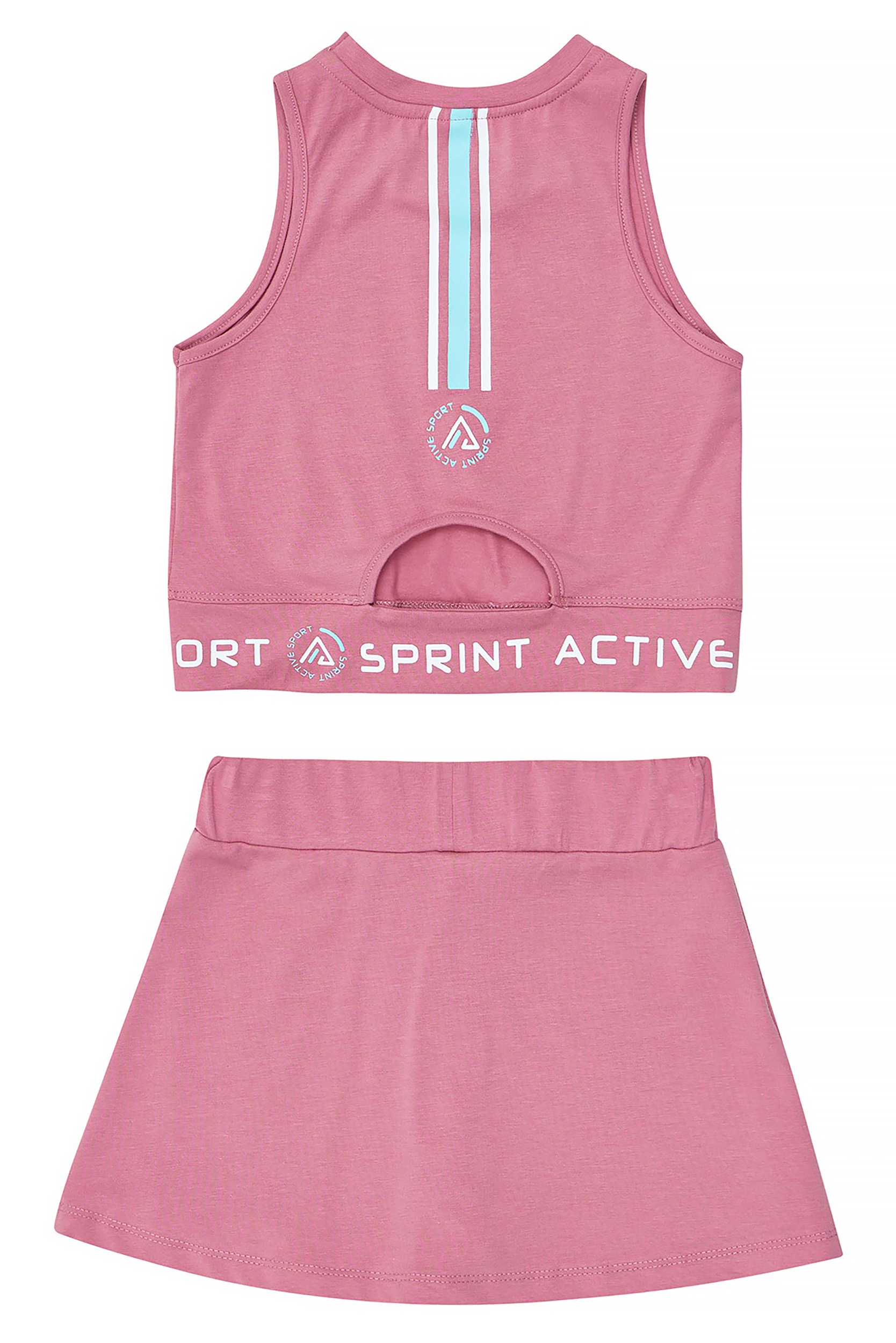 - Παιδικό σετ 2 τεμαχίων λύκρα τύπου τέννις. Μπλούζα αμάνικη με ανάγλυφο λογότυπο Sprint στο στήθος και πίσω, διπλή φάσα στο κάτω μέρος ολόγυρα “SPRINT ACTIVE” και άνοιγμα στην πλάτη. Σορτς-Φούστα (Skort) με άνοιγμα και ελαστικό ζωνάρι, ενσωματωμένο σορτς εσωτερικά και τύπωμα.