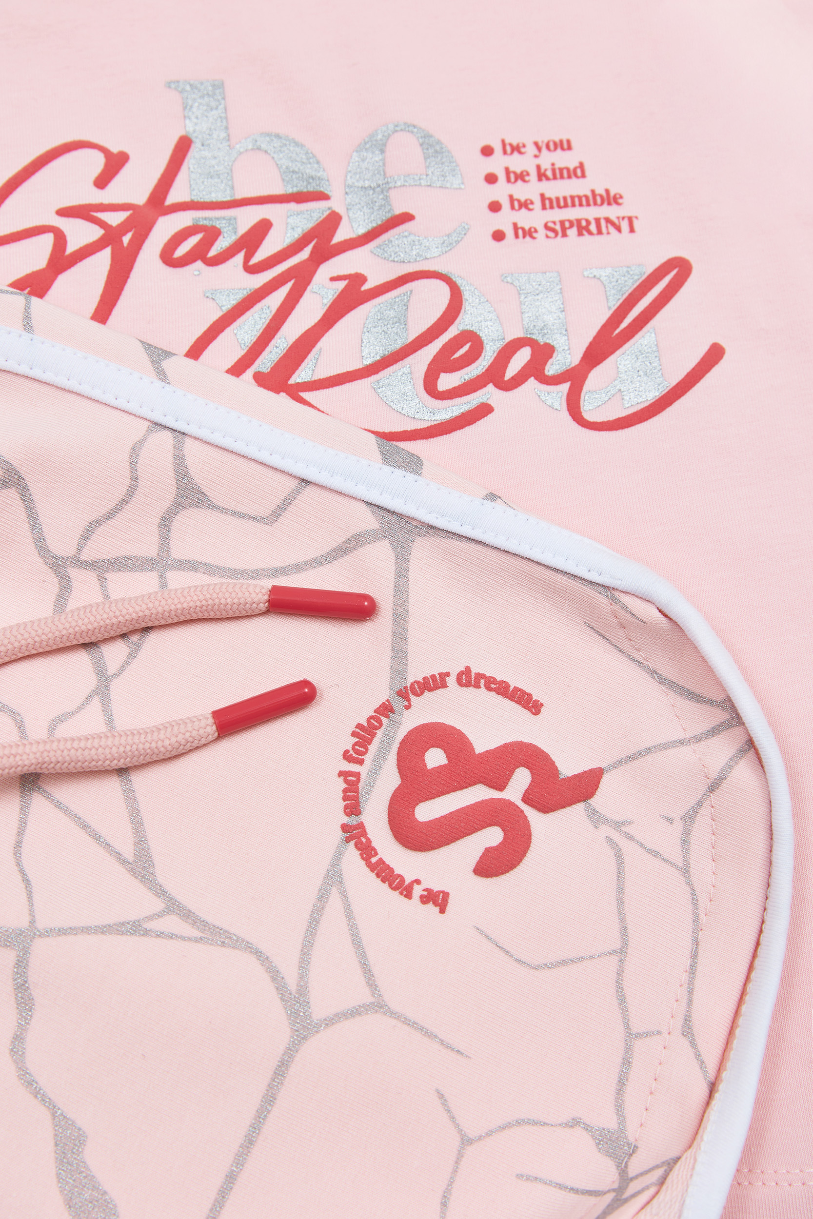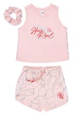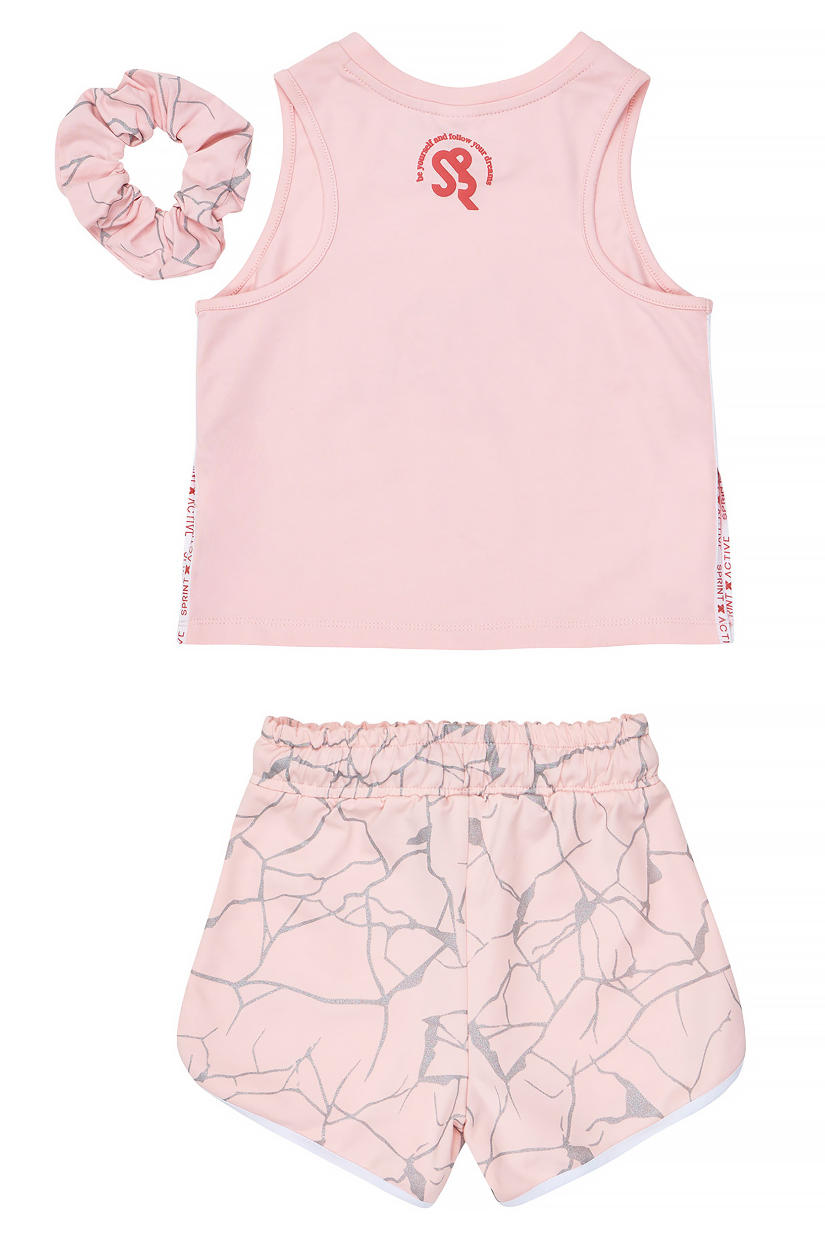 - Παιδικό σετ 2 τεμαχίων. Μπλούζα αμάνικη λύκρα με ανάγλυφο τύπωμα “Stay Real” στο στήθος με silver λεπτομέρεια και λογότυπο Sprint στην πλάτη και δίχρωμη active τρέσα στο πλάι. Αξεσουάρ λαστιχάκι μαλλιών. Σόρτς φούτερ με ελαστικό ζωνάρι και ρυθμιζόμενα κορδόνια, αθλητικές φάσες σε χρωματική αντίθεση και all-over silver γεωμετρικό “crackled” μοτίβο.
