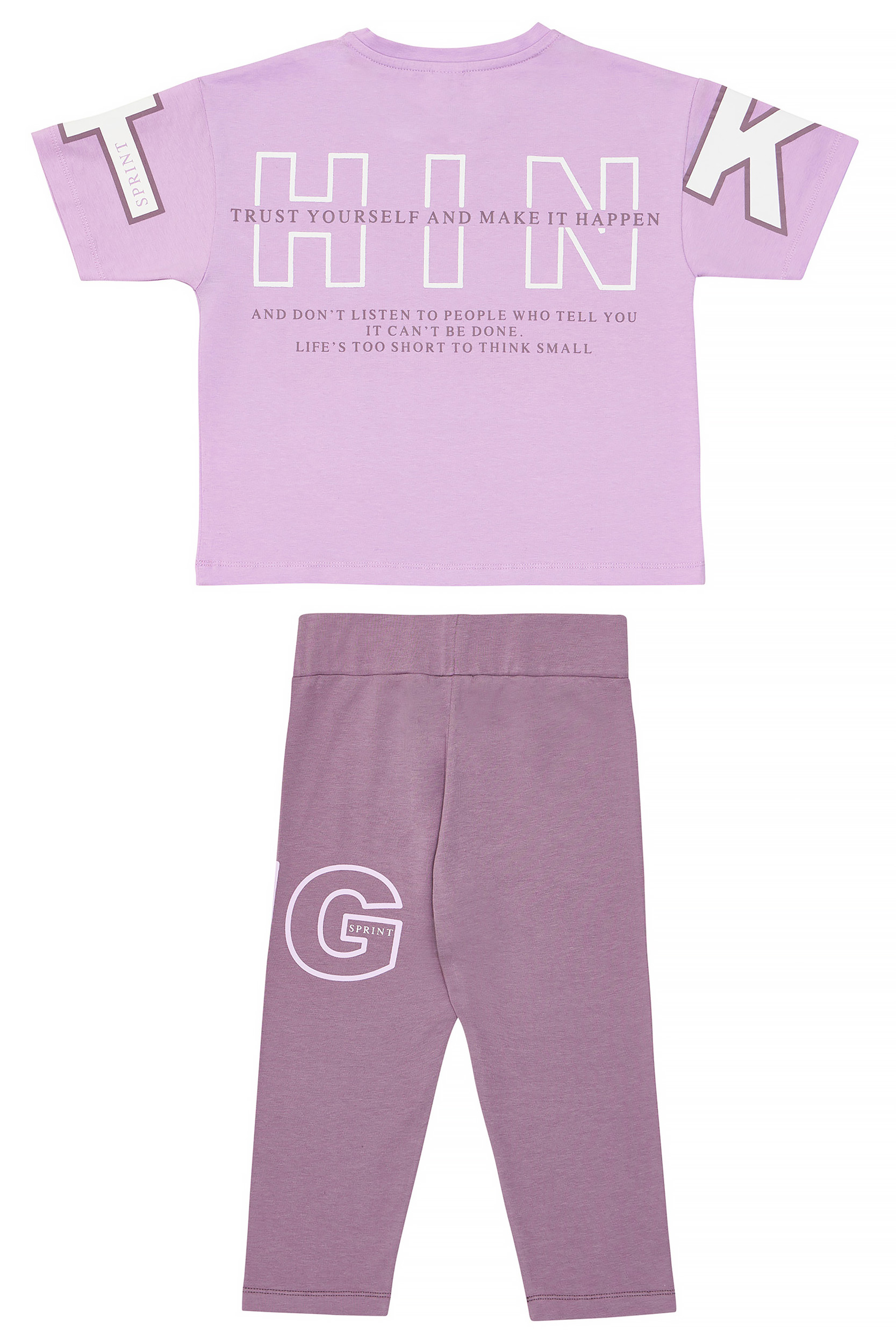 • Παιδικό σετ 2 τεμαχίων λύκρα. Μπλούζα με τύπωμα “SPRINT THINKERS” logo στο στήθος και γράμματα στα μανίκια και στην πλάτη με ανάγλυφη υφή. Κολάν capri με ελαστικό ζωνάρι και τύπωμα.