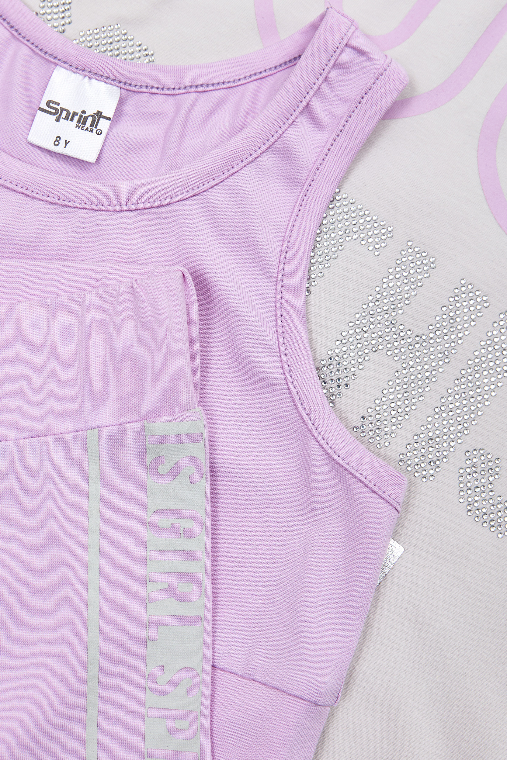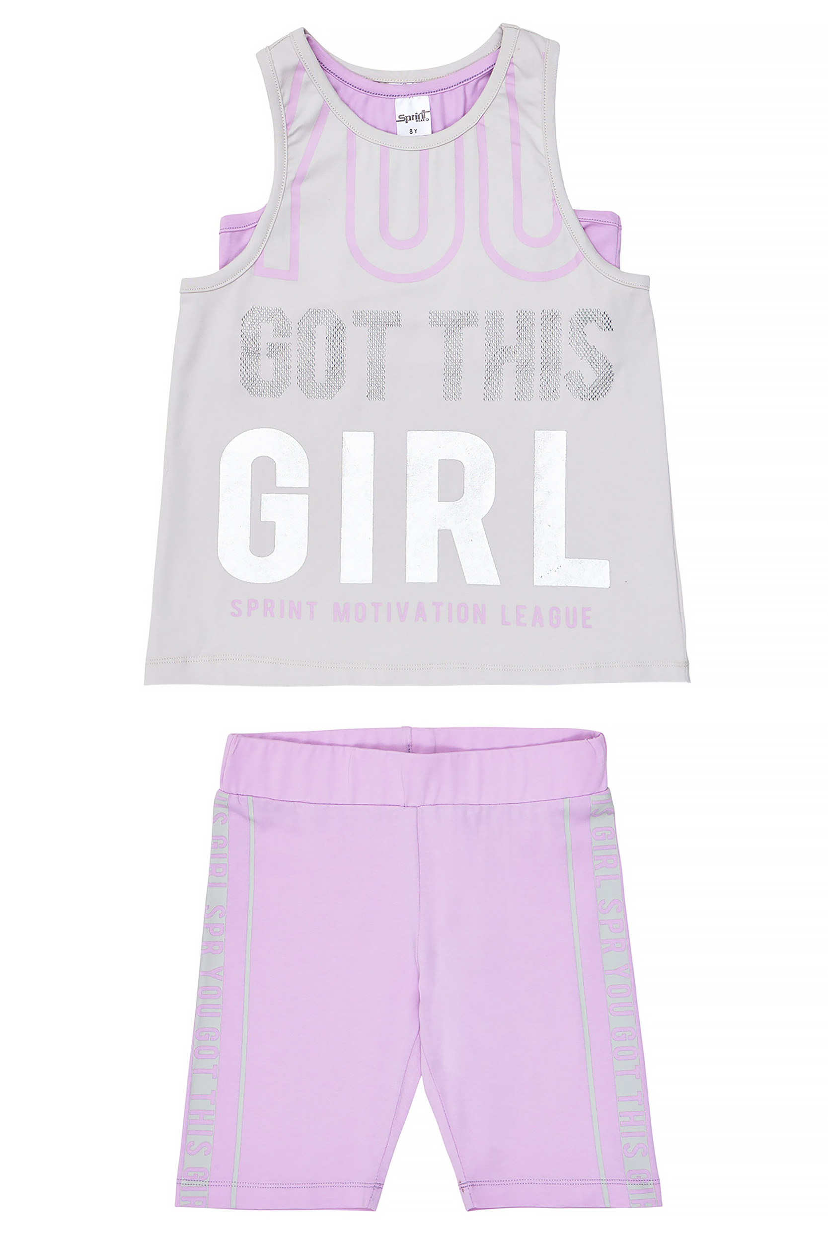 - Παιδικό σετ 3 τεμαχίων λύκρα. Μπλούζα αμάνικη με τύπωμα εμπρός “YOU GOT THIS GIRL” με strass. Εσωτερικό αθλητικό τοπάκι. Κολάν ποδηλατικό με ελαστικό ζωνάρι και τύπωμα.