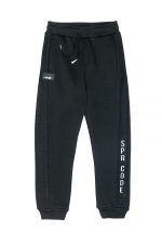• Παιδικό παντελόνι φόρμας με χνούδι. Τύπωμα επάνω σε ρίμπ φάσα με ανάγλυφη υφή και απλικέ rubber SPRINT ετικέτα.